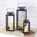 Castiçal/suporte de vela de vidro para chão/piso com ferro preto