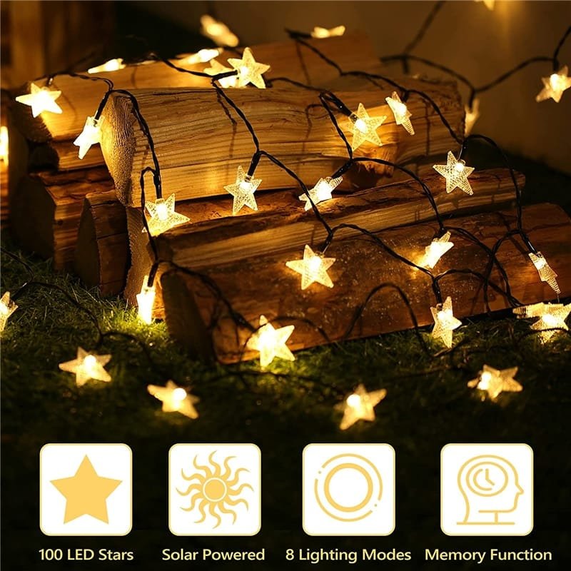 Cordão com luza de led bola ou estrela para jardins, varandas e sacadas