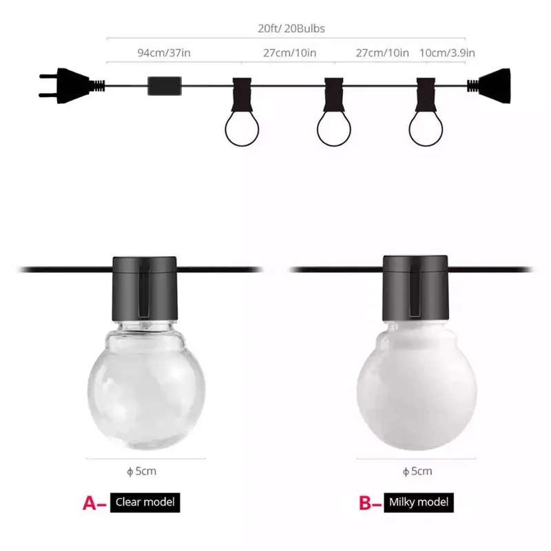 Cordão Varal Luz Lâmpada Bulbo Para Jardins