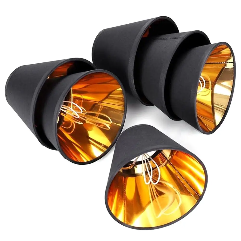 Cúpula De Reposição Pra Abajures e Lustres Tecido Preto e Interno Dourado