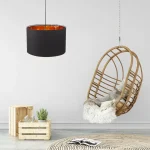 Cúpula Redonda Moderna De Reposição Em Abajur e Pendentes, Externo Preto e Interno Dourado