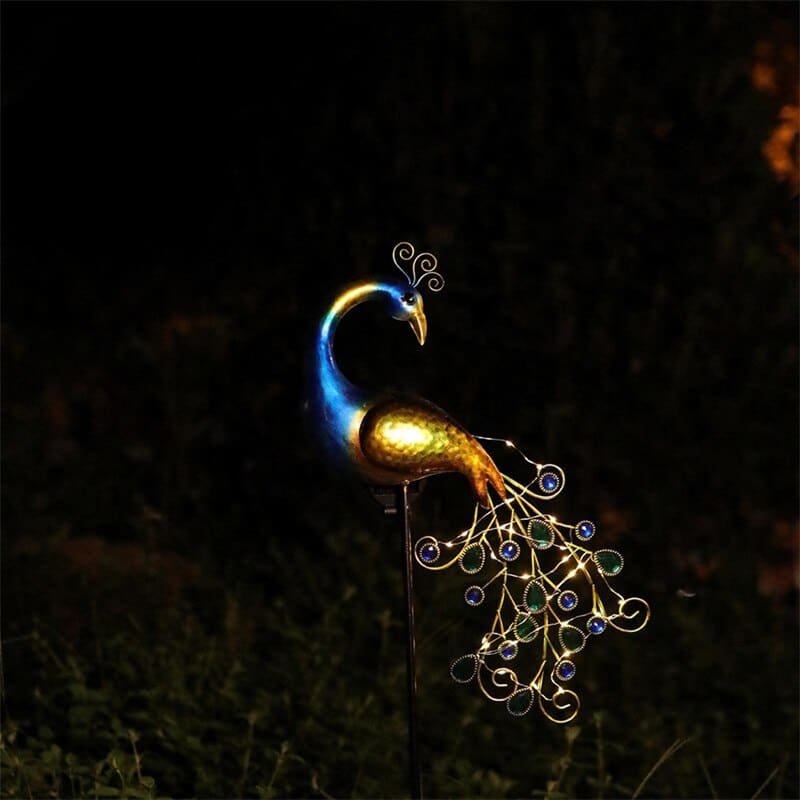 Escultura decorativa pavão com luz de led com energia solar