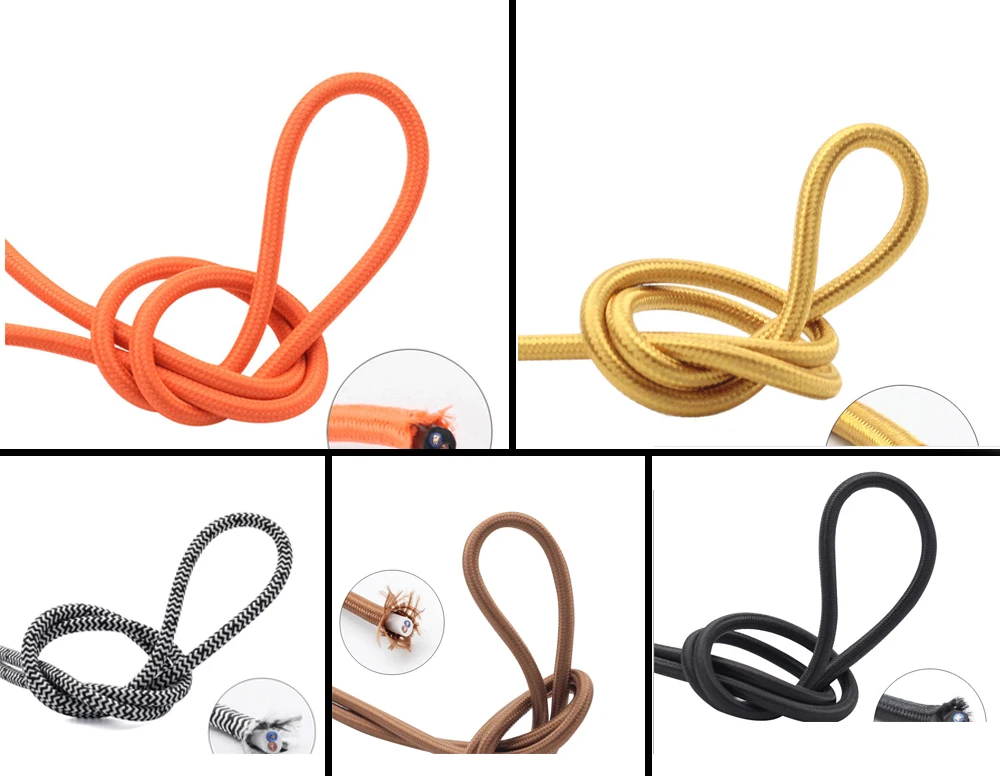 2m 3m 5m 10m 20m 30m 40m 250V 2 núcleos 0.75mm tecido de fio elétrico têxtil tecido trançado cabo flexível cabo de lâmpada vintage