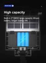 5 – Projetada com classificação à prova d’água IP65, esta luz solar resiste à chuva e à neve, garantindo desempenho confiável em diversas condições climáticas, enquanto alimentada por baterias 18650 de alta capacidade para uso duradouro.
