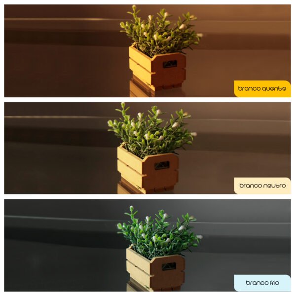 Temperatura de cor: Branco Quente 3000K | Branco Frio 6000K; | Branco Neutro 4000K