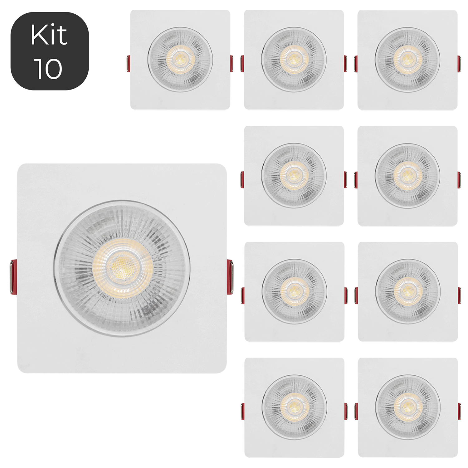 Kit Com 10Un Spot Quadrado Branco Led 5w
