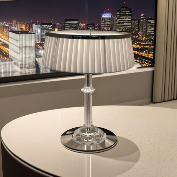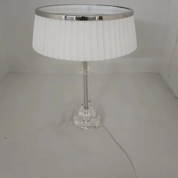 Luminária Abajur Coluna Vidro Cúpula Tecido Plissado