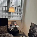 Luminária Chão Articulado Cromada e Cúpula Tecido Branca