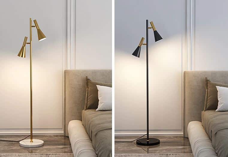 Luminária de chão moderna cúpula cônica e base redonda de mármore