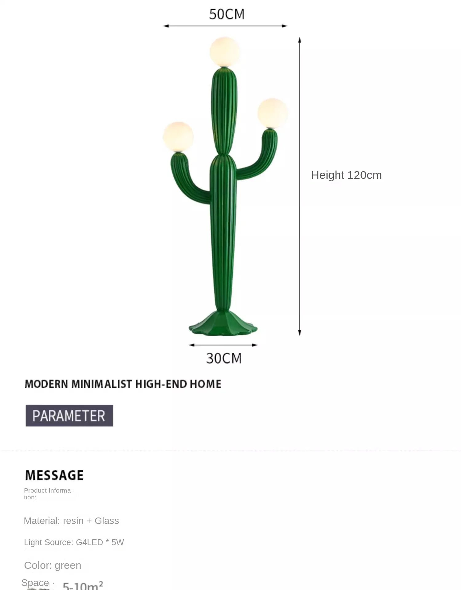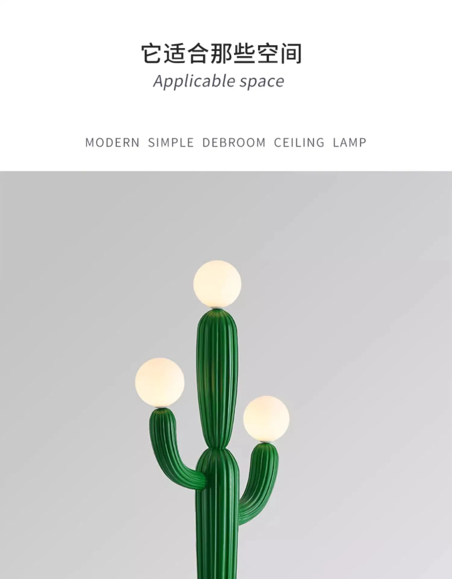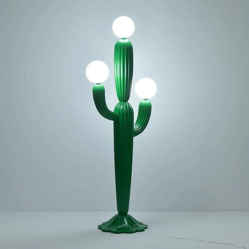 Luminária De Chão Cacto Verde Com 3 Bolas Brancas