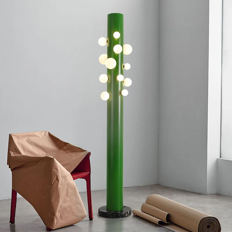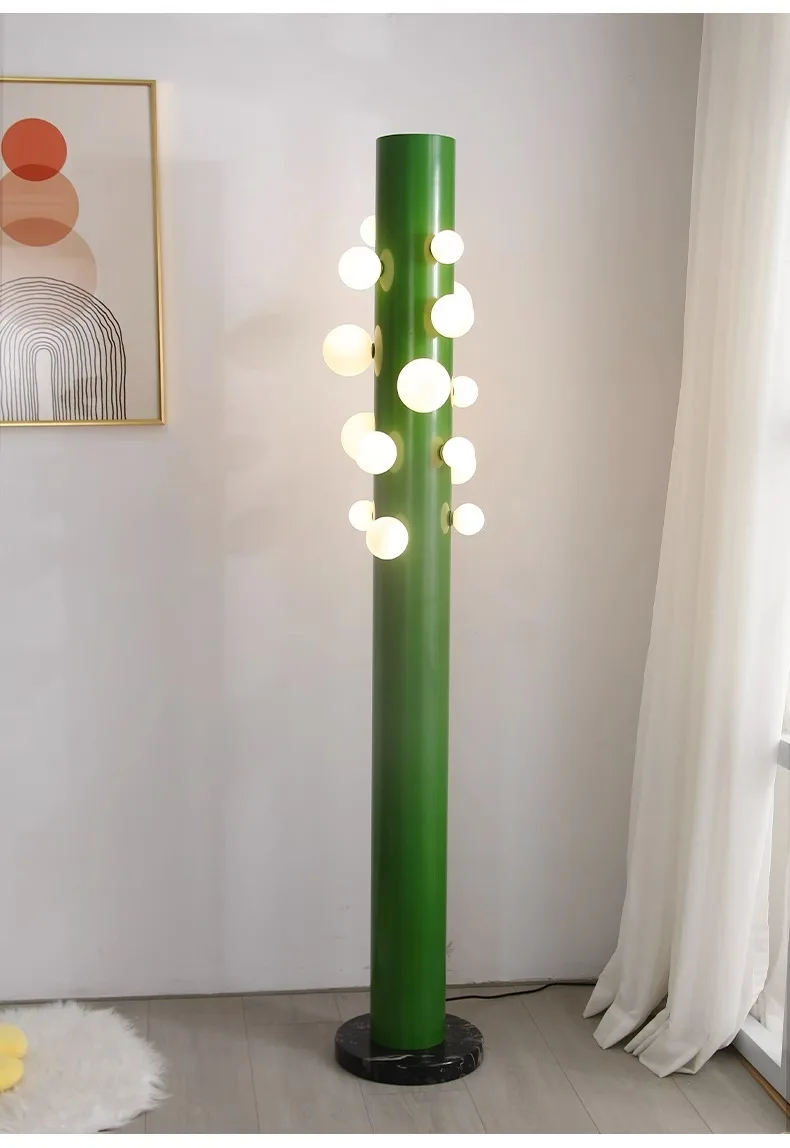 Luminária De Chão Coluna Verde Com Bolas Brancas