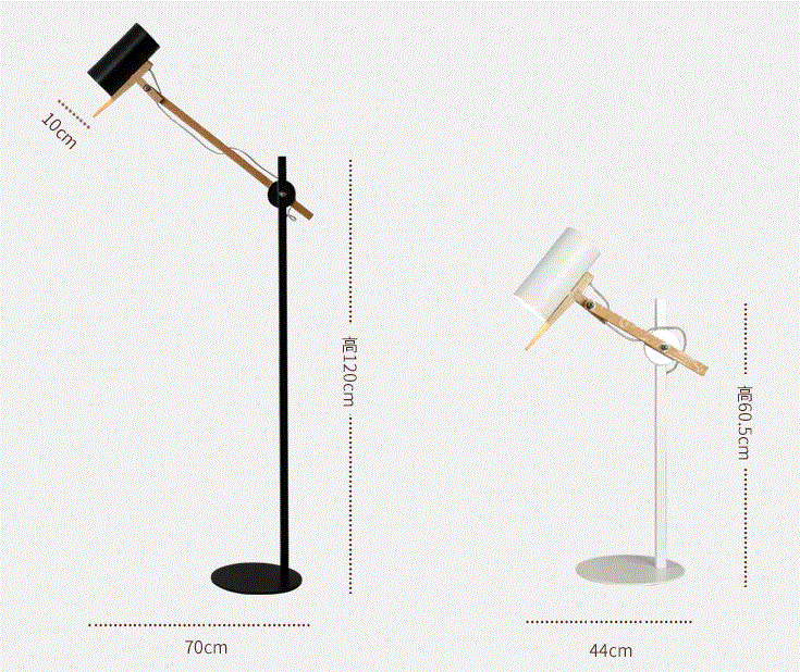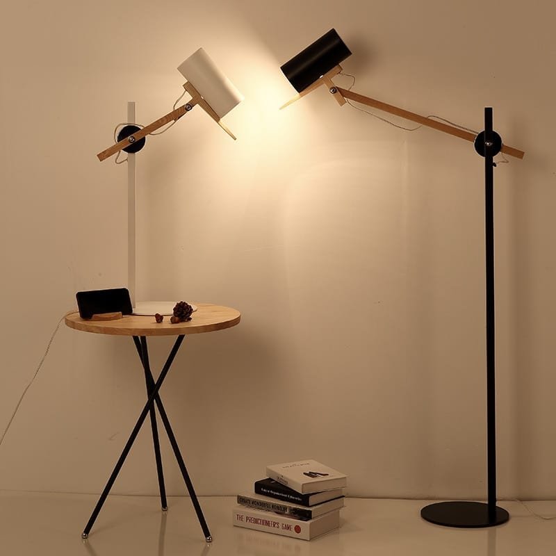 Luminária de piso industrial de alumínio e madeira com ângulo de luz ajustável