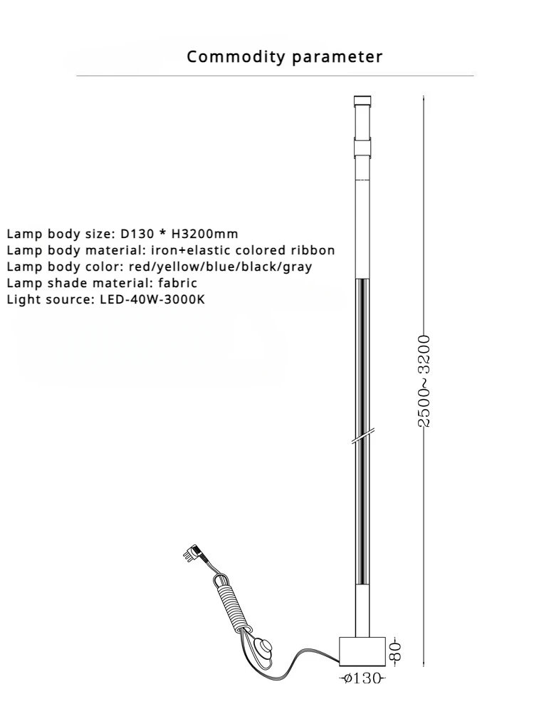 Lâmpada tamanho do corpo: D130 * H3200mm