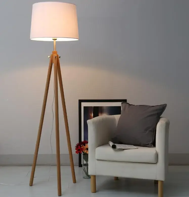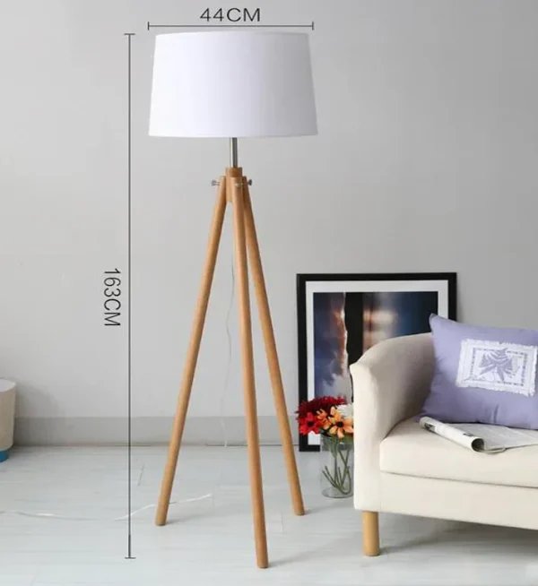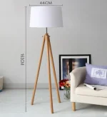 Luminária De Chão Tripé De Madeira Maciça e Cúpula Tecido Branca