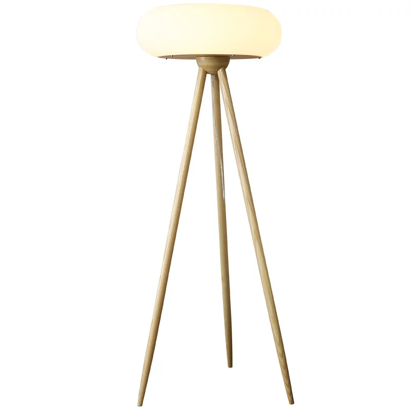Luminária De Chão Tripé Madeira e Cúpula PVC