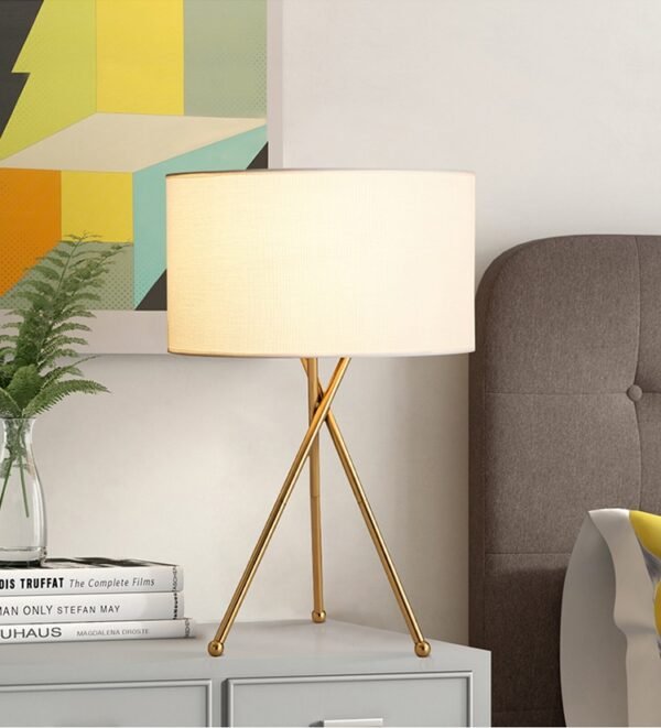 Luminária de chão tripé de alumínio minimalista com cúpula tecido (Abajur)