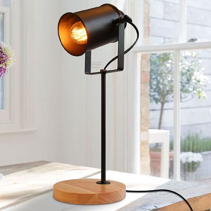 Luminária de mesa minimalista de madeira e alumínio com cúpula tipo spot ajustável