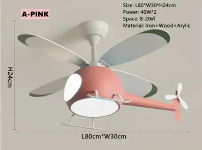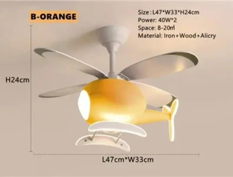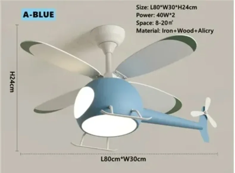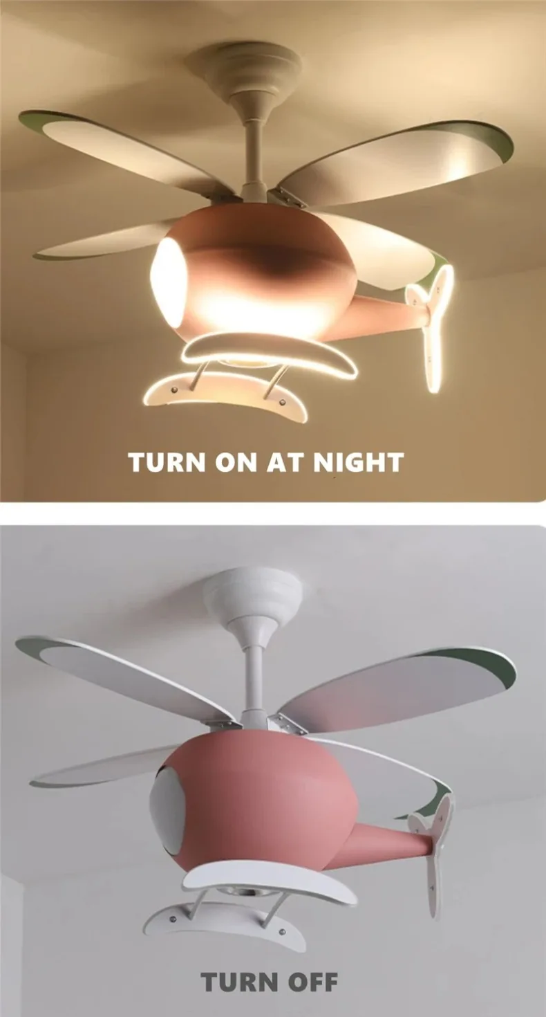 Luminária Infantil Cartoon Airplane (Helicóptero), LED Ventilador