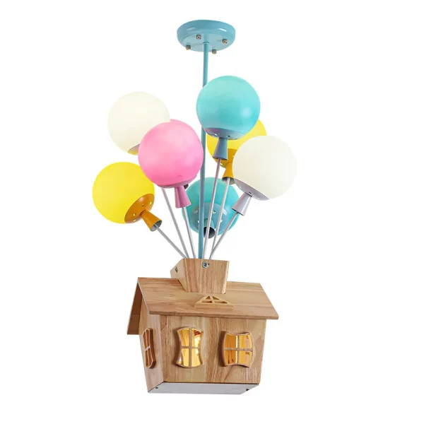 Luminária Infantil Pendente Balão Voador De Casa De Madeira Criativa