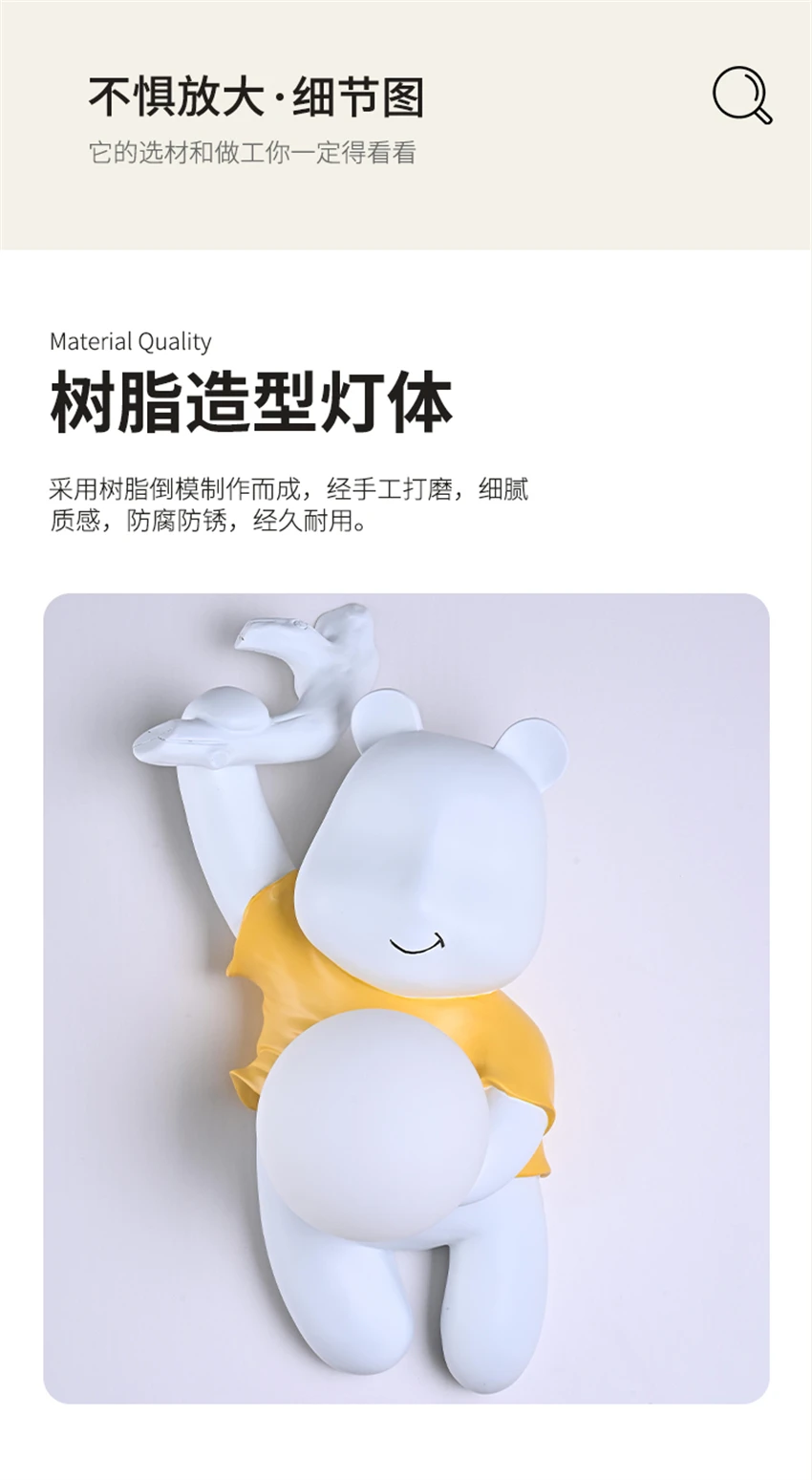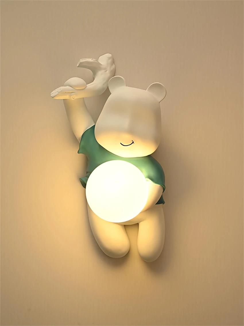 Luminária Infantil (Quarto Bebê), Arandela Urso Segurando Bola Branca