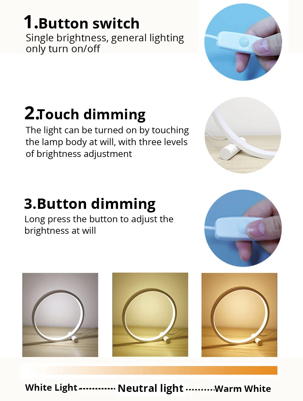 Luminária Mesa Moderno Circulo Alumínio e LED Touch