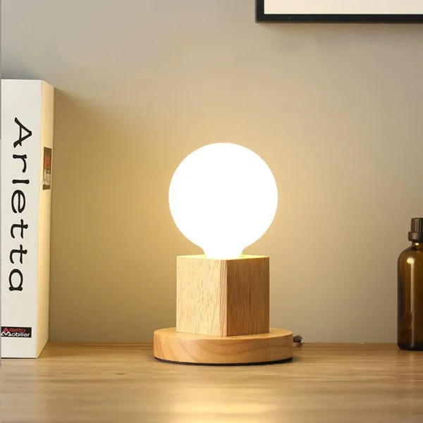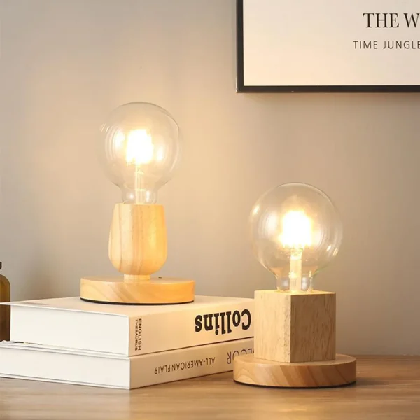 Luminária Mesa Retro De madeira E27