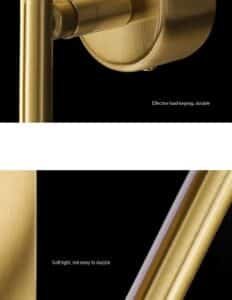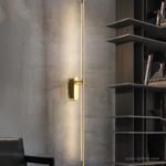 luminária de parede moderna, tubo minimalista cor dourado e luz de led