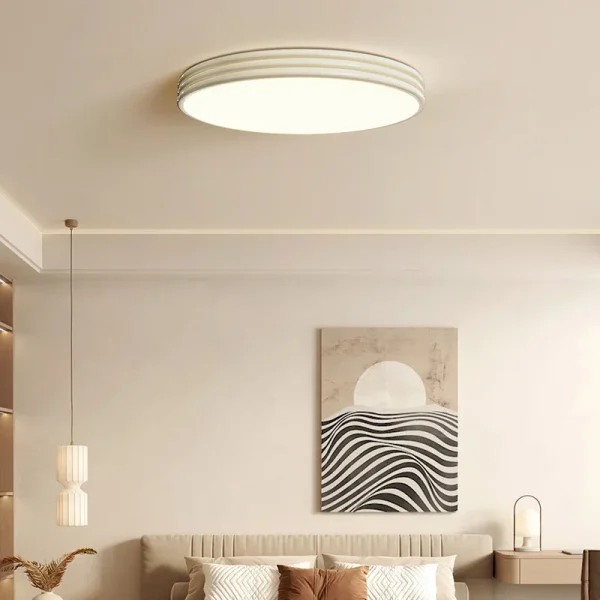 Luminária Sobrepor Acabamento Frisado Moderna Redonda Difusor Acrílico e Luz LED