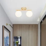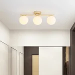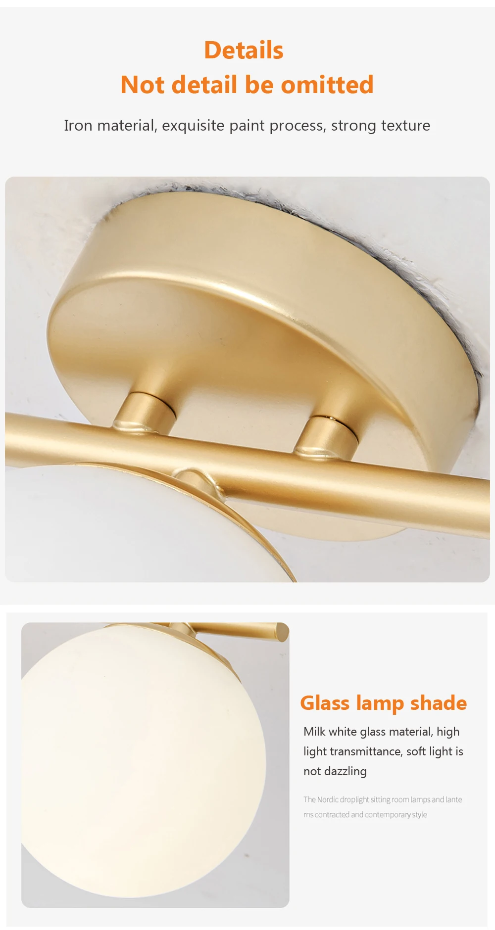 Luminária Sobrepor Dourado Com Bolas Vidro Brancas