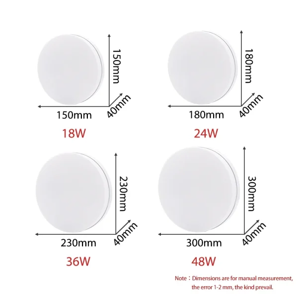- 36W:⌀ 230mm (18-25m²)