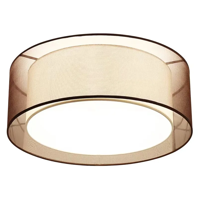 O que é? Trata-se de um lustre sobrepor redondo, no estilo American Country, que combina um acabamento em tecido com uma estrutura de três fontes de luz. É ideal para ambientes que necessitam de uma iluminação difusa e elegante.