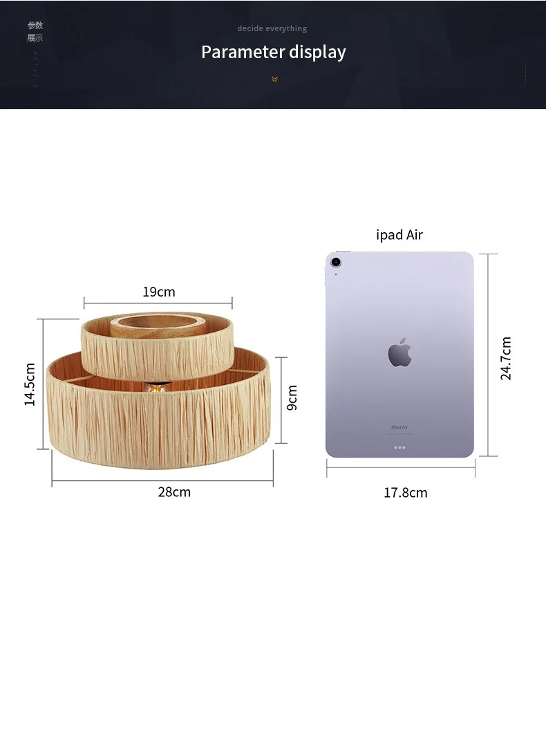 Em até 6x de R$197,53 sem juros À vistaR$1.066,65no PixEconomize R$118,52 no PixÀ vistaR$1.102,21no Boleto bancário Luminária Sobrepor Redondo Vintage Madeira, Cúpula Abajur Dupla Camada