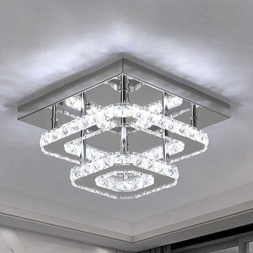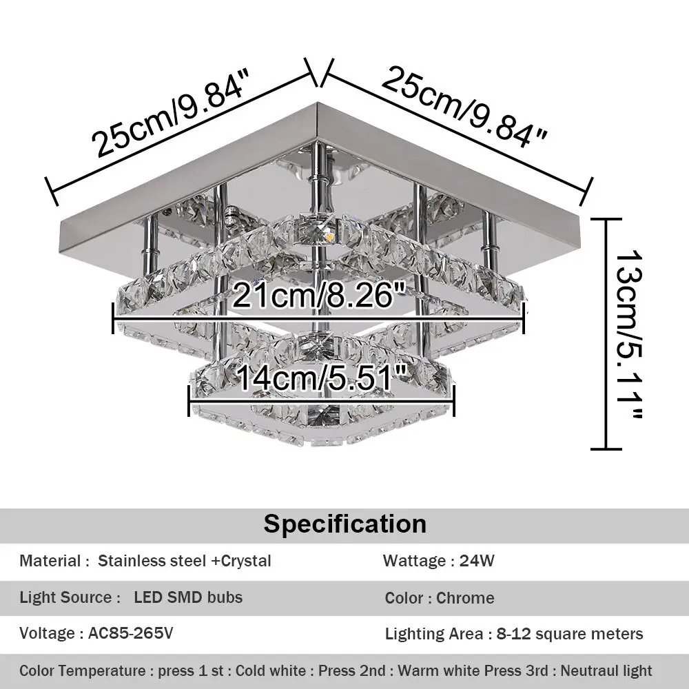 Luminária Sobrepor Sofisticada Cromado e Cristal K9 Translúcido Modelo 2024/2025