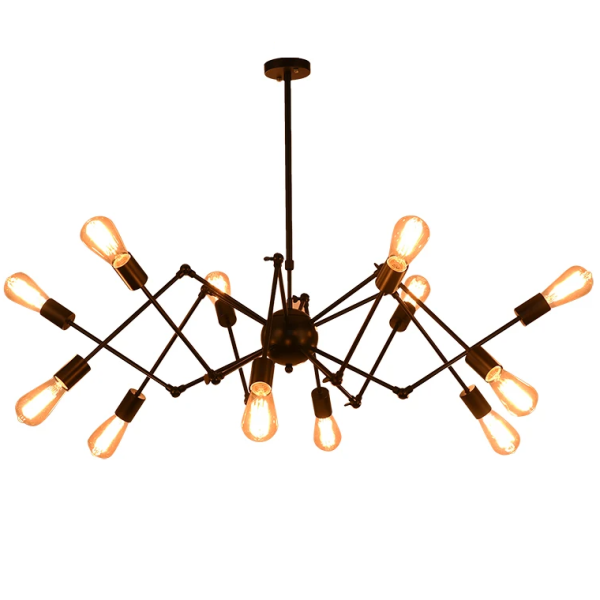 Lustre Spider industrial preto com braços articulados e lâmpada aparente