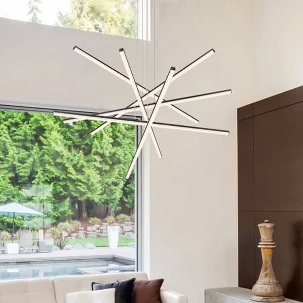 Ele costuma ser suspenso no teto por cabos de aço, o que confere um visual moderno e sofisticado. Sua iluminação é eficiente e uniforme, garantindo que o ambiente seja bem iluminado e agradável.