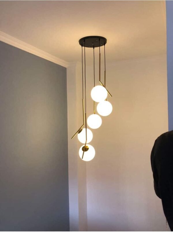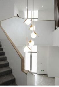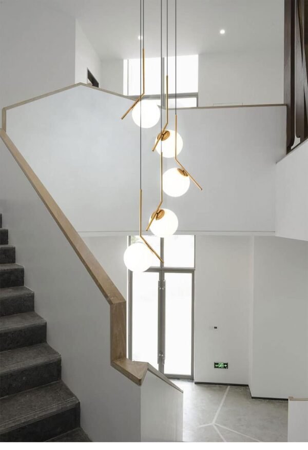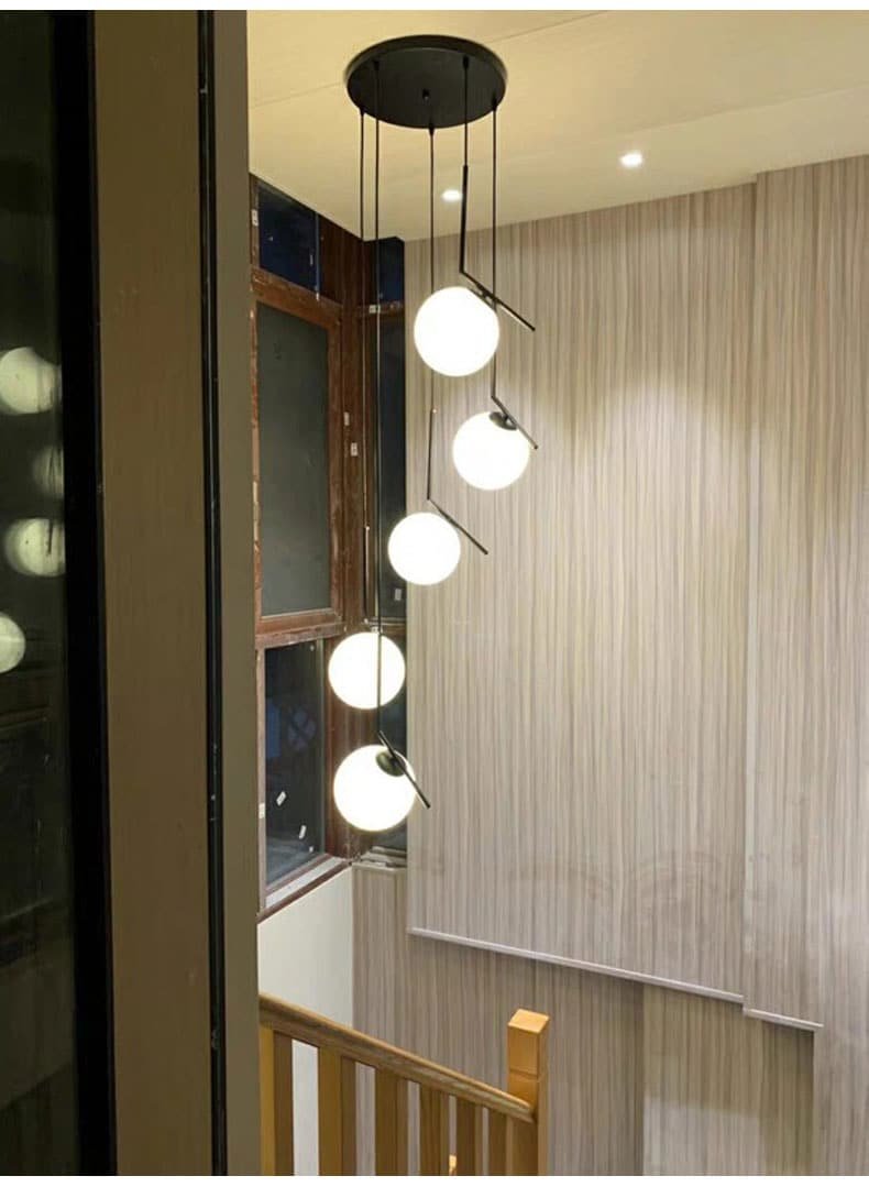 Primordialmente, o Lustre Bola de Vidro para Escada Miresa , Teto Alto e Mezanino. Esse lustre é um item de decoração versátil e elegante que pode adicionar um toque de sofisticação a qualquer espaço. Ainda assim, com uma bola de vidro brilhante como seu elemento central, ele proporciona uma iluminação suave e difusa, criando uma atmosfera acolhedora e luminosa.