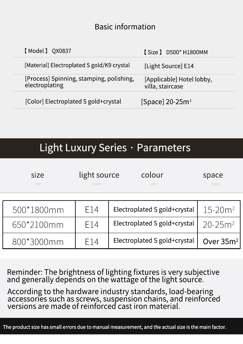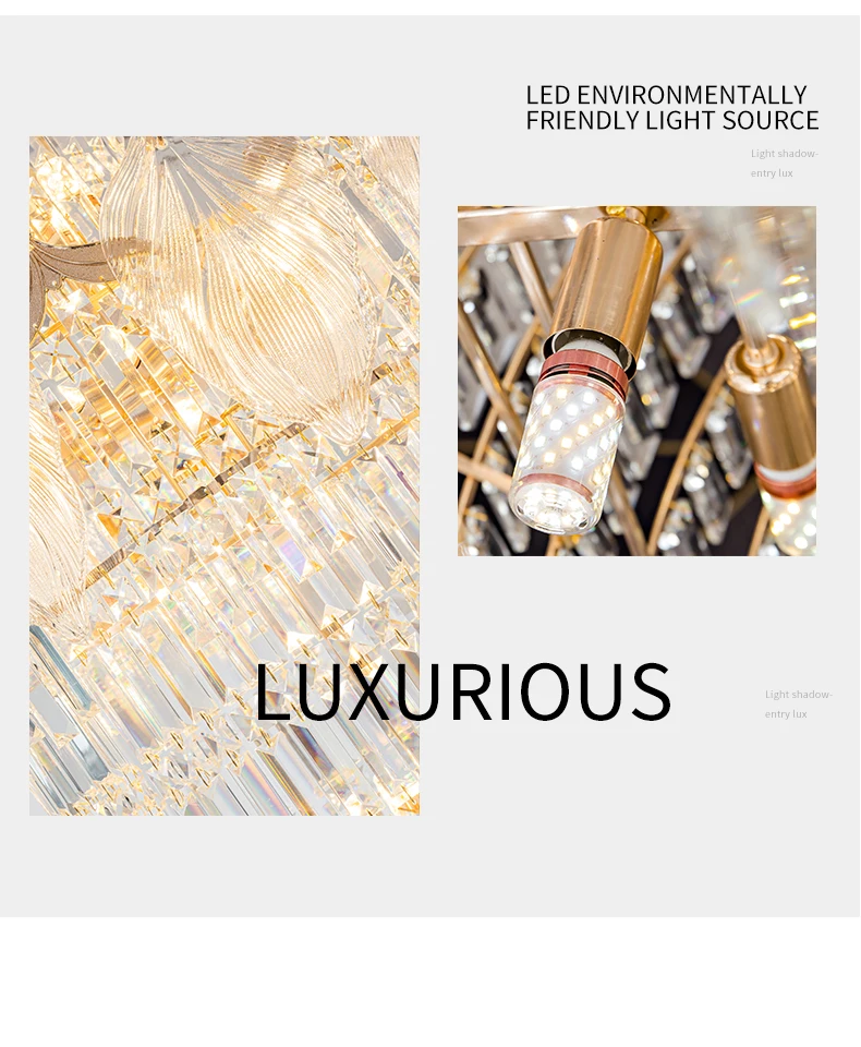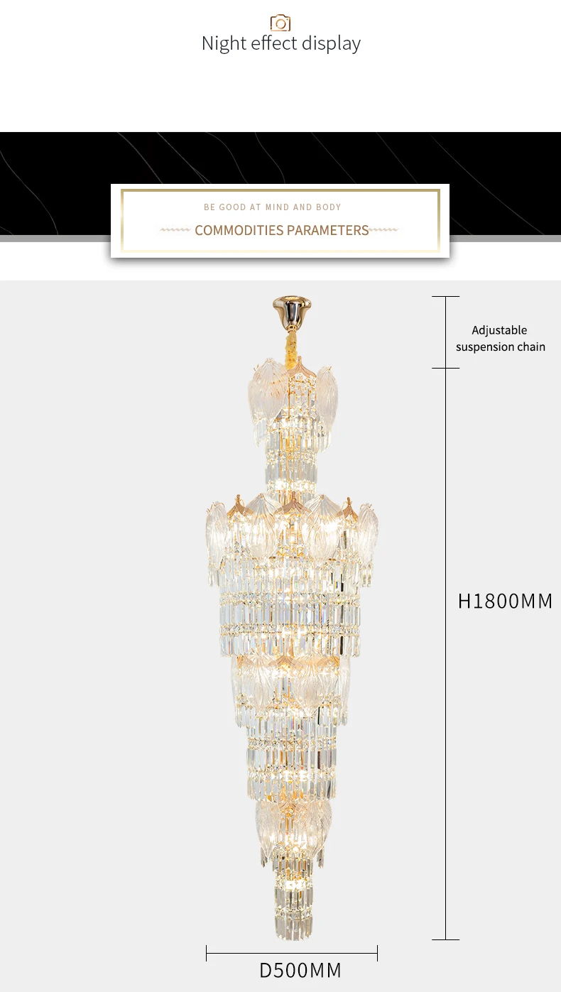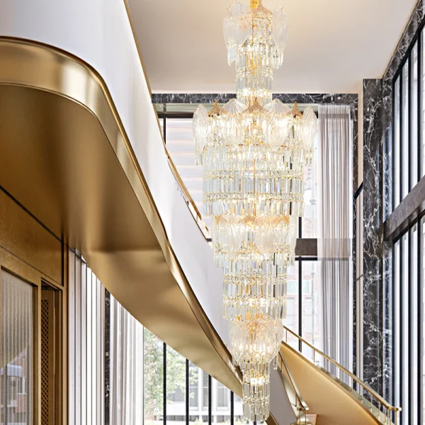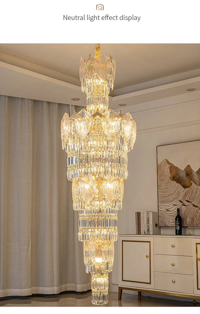 Lustre Clássico Design Europeu Cristal Asfuor Para Escadas e Teto Duplo