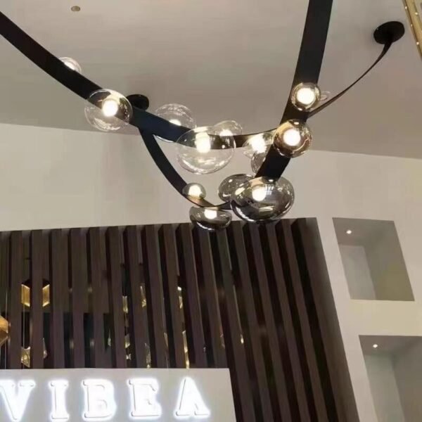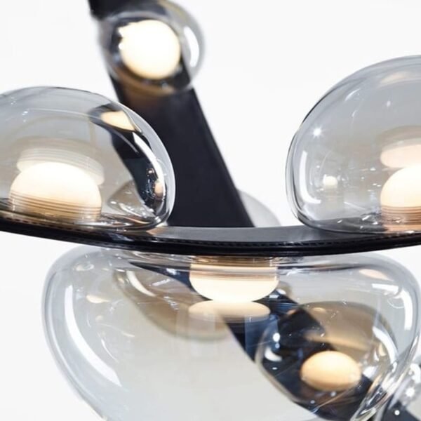 Sobretudo, além de proporcionar uma iluminação funcional, o Lustre Contemporâneo Minimalista Despojado Flexível com Bolhas de Vidro e Luz de LED também pode ser usado como uma peça de arte no espaço, destacando-se como um elemento de destaque na decoração. Ele é ideal para espaços como salas de jantar, cozinhas, quartos e escritórios, ajustado para atender às suas necessidades de iluminação.