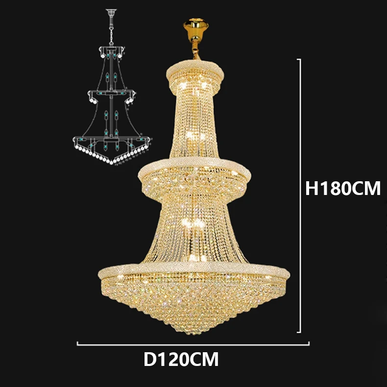 Em até 6x de R$923,31 sem juros À vistaR$4.985,88no PixEconomize R$553,99 no PixÀ vistaR$5.152,08no Boleto bancário Lustre Clássico Design Europeu Cristal Asfuor Para Escadas e Teto Duplo