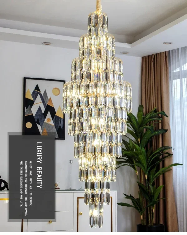 Lustre Duplex De Cristal Longo Para Escadas