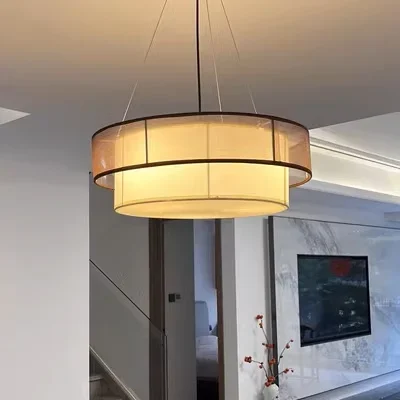 Lustre Estilo Chinês Redondo Cúpula Tecido
