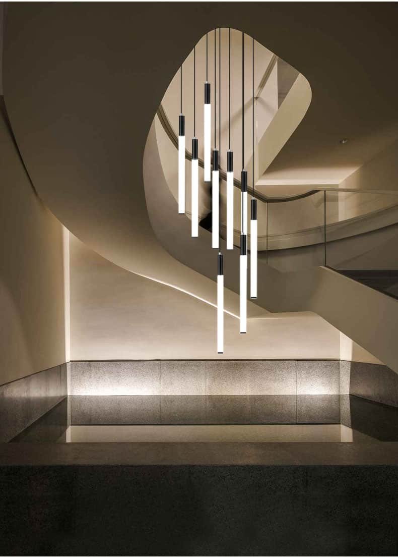Em suam, com estes passos, você pode usar o Lustre moderno tubos longos de vidro e luz de LED para decoração de sala de jantar, escadas, hall de entrada, por exemplo, e teto alto com sucesso.