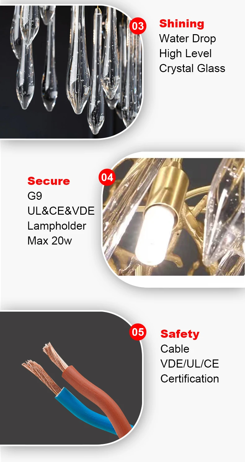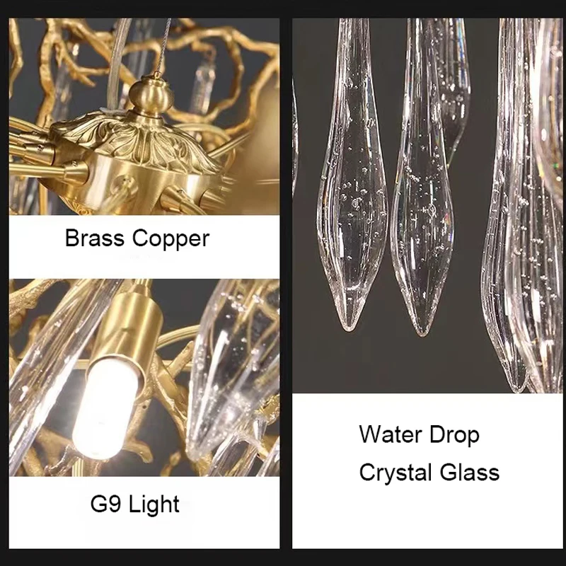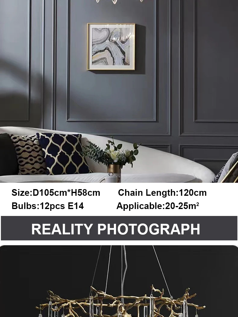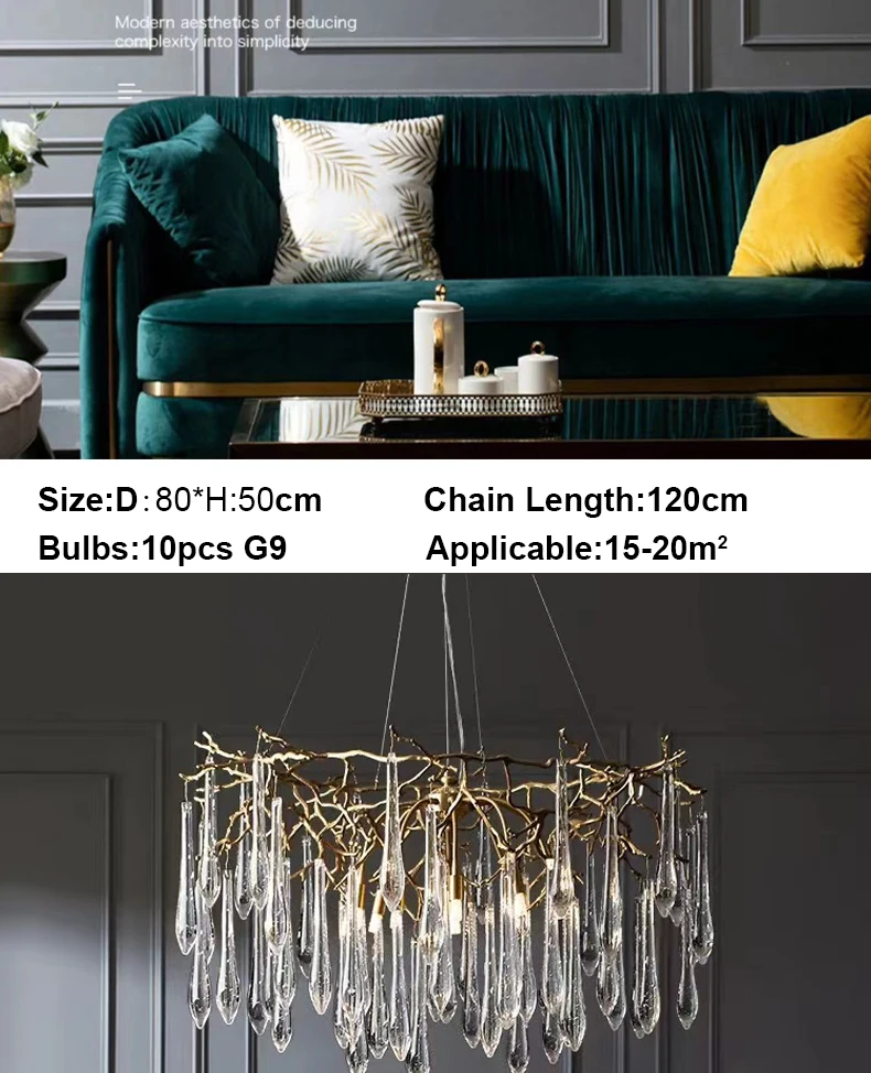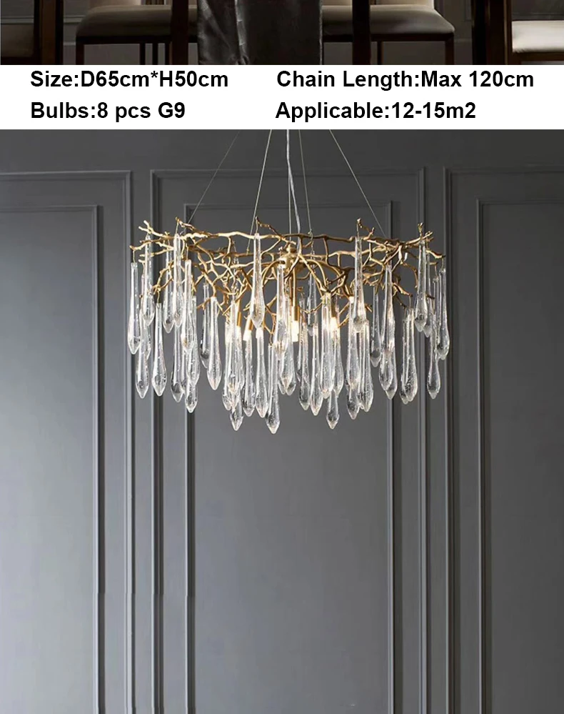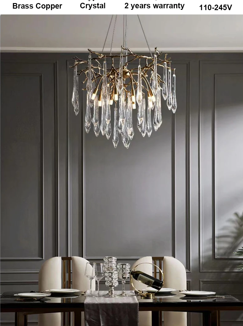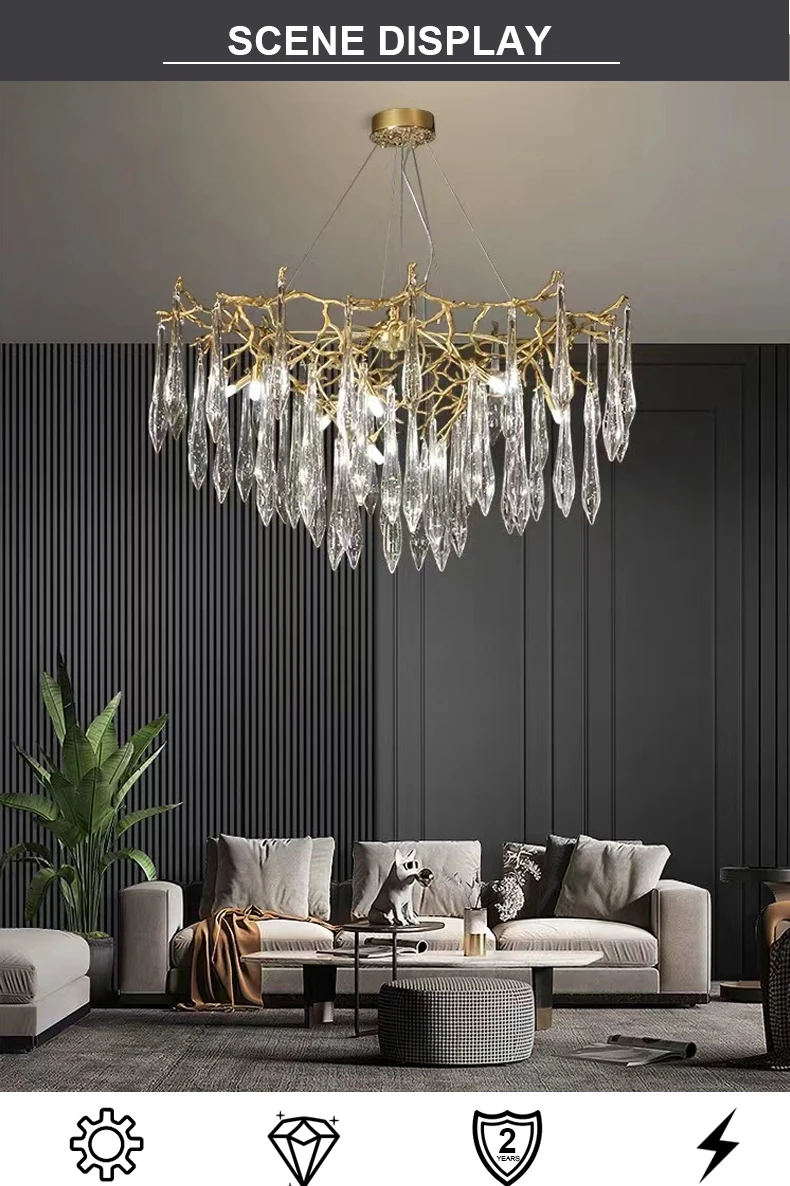 Lustre Galho Árvore com Pingentes de Cristais K9 Transparentes,