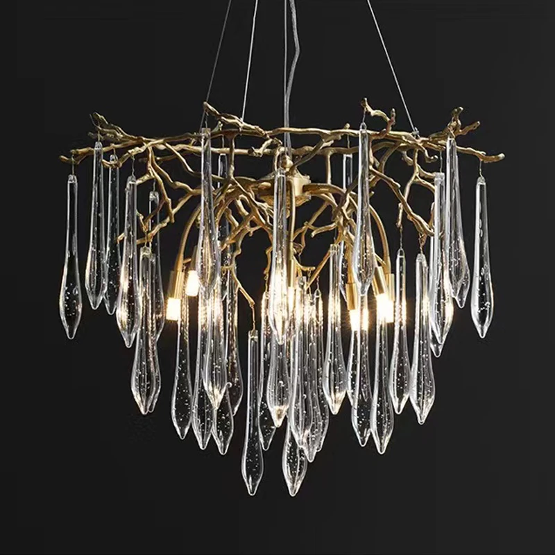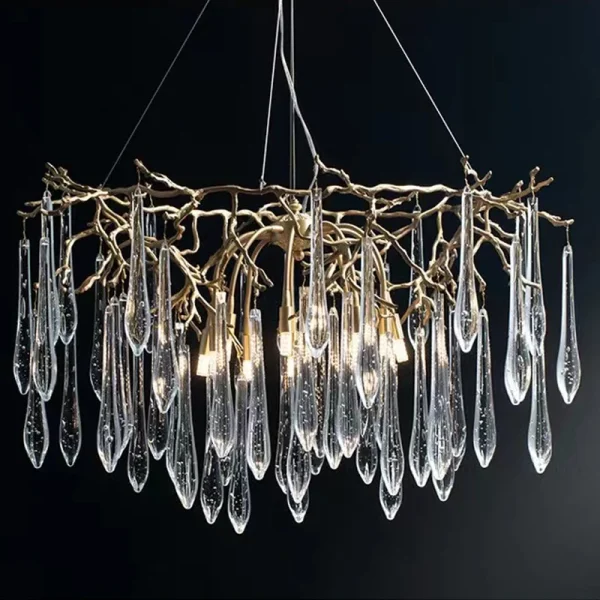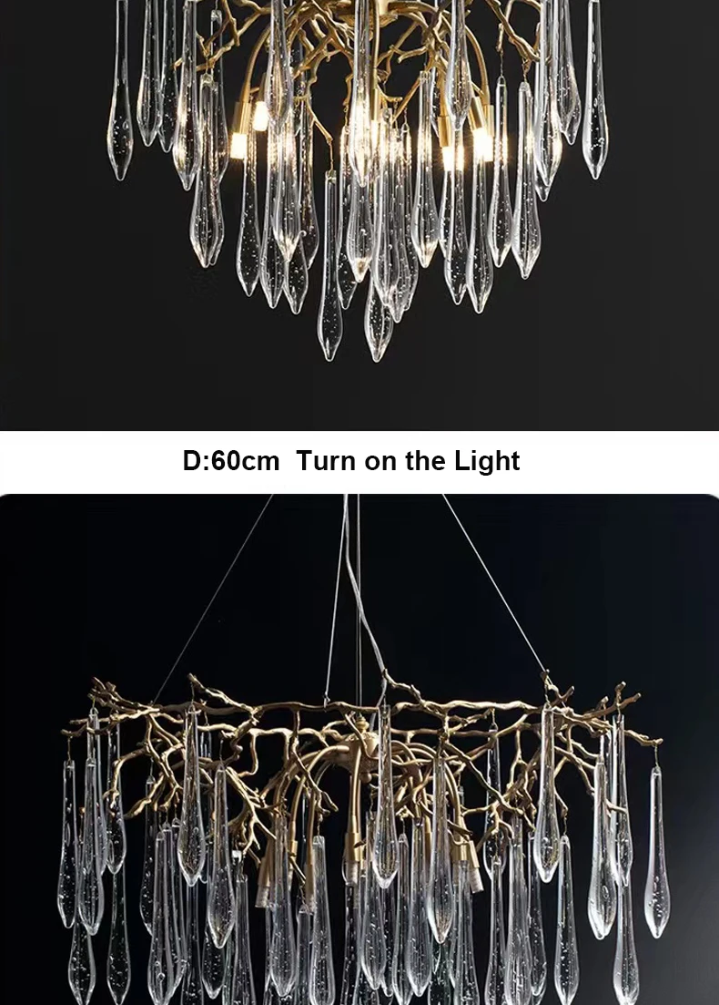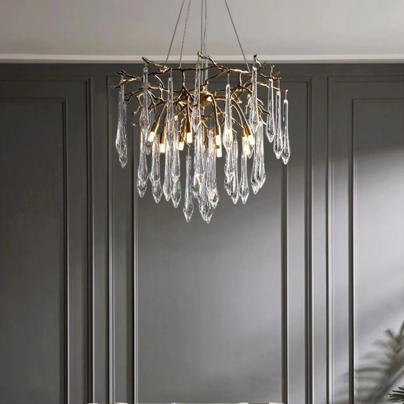 Lustre Galho Árvore com Pingentes de Cristais K9 Transparentes