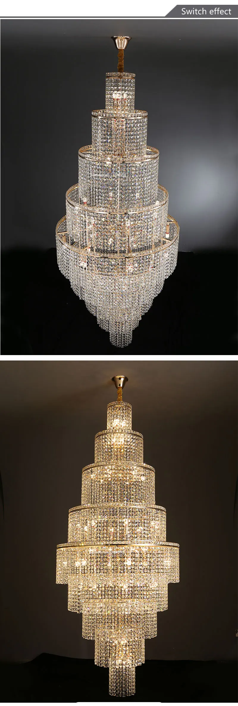 Lustre Grande Moderno Imperial De Cristal Para Escadas e Tetos Duplos
