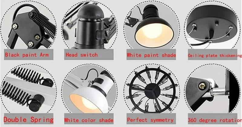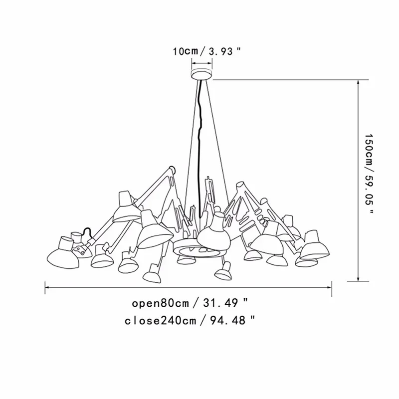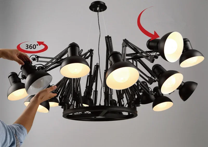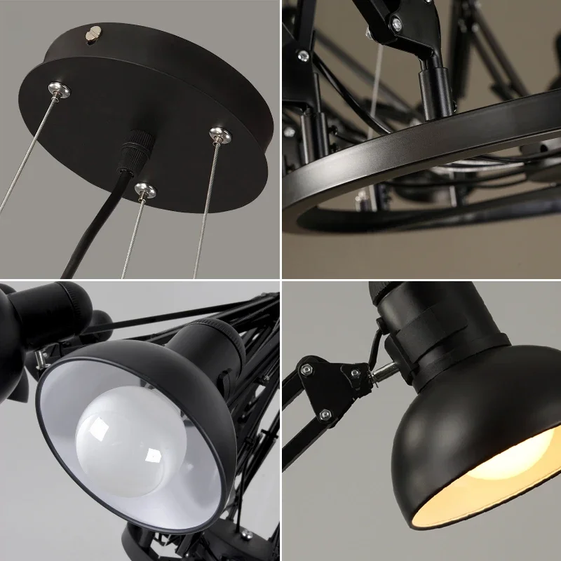 Lustre Industrial Ferro Aranha Braços Flexíveis