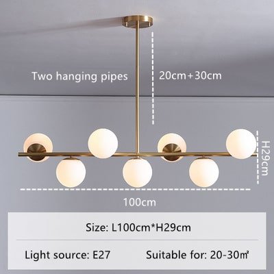 Medidas do lustre contemporâneo com bolas de vidro 100cm de comprimento Miresa