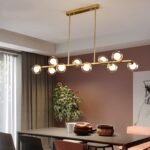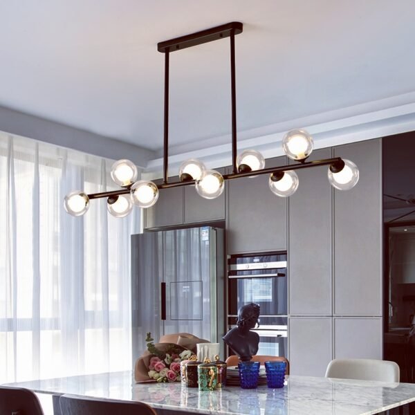 - Altura: Certifique-se de que o lustre está pendurado a uma altura adequada para a mesa de jantar. Ainda assim, Ele deve ser instalado de forma que as bolas de vidro não atinjam a cabeça das pessoas sentadas à mesa.