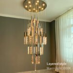 Lustre Clássico Design Europeu Cristal Asfuor Para Escadas e Teto Duplo