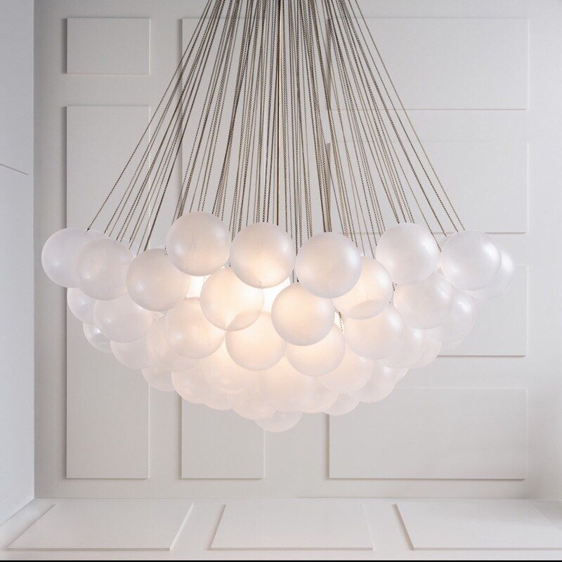 Lustre moderno com bolas, esferas de vidro branco leitoso